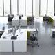 Stations de travail opérationnelles 5th Element par Las Mobili avec disposition partagée, prêtes à recevoir des accessoires et idéales pour répondre aux besoins d'un espace de travail moderne et performant. Les panneaux avant en feutre imprimé délimitent les zones de travail et créent un confort acoustique optimal, localement et dans tout l'environnement. Stations de travail réglables en hauteur. Solutions qui respectent la diversité anthropométrique et permettent de sélectionner la hauteur du plateau en fonction des besoins personnels.