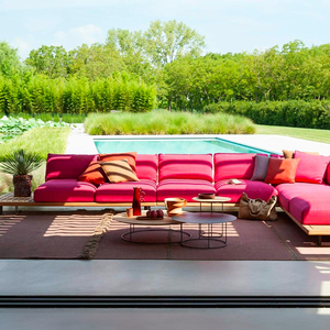 La collection comprend des canapés modulaires, fauteuils lounge, tables et chaises de repas, bains de soleil et lovebeds. Chaque meuble est réalisé en aluminium thermolaqué et garni de tissus outdoor haute performance. Leurs lignes basses et proportions généreuses les rendent parfaits pour les terrasses résidentielles ou les hôtels de luxe.