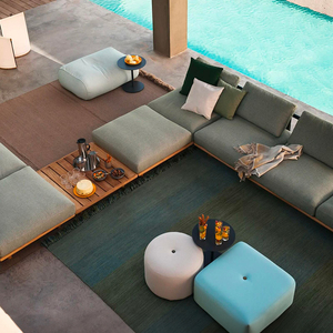 Sa structure tressée enveloppe canapés modulaires, fauteuils lounge, bains de soleil et tables à manger d’extérieur, alliant douceur visuelle et clarté structurelle. Le cordage synthétique, associé à l’aluminium peint, confère aux pièces une aura architecturale et accueillante : assez robuste pour l’hôtellerie, assez subtile pour les villas privées.
